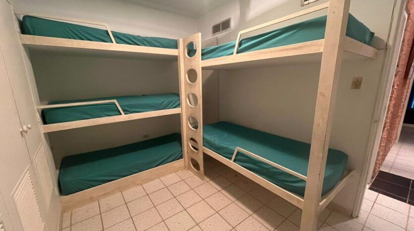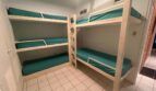 esmerilado con marco de aluminio -Habitación con 5 camas repartidas en 2 literas hechas en obra con amplios