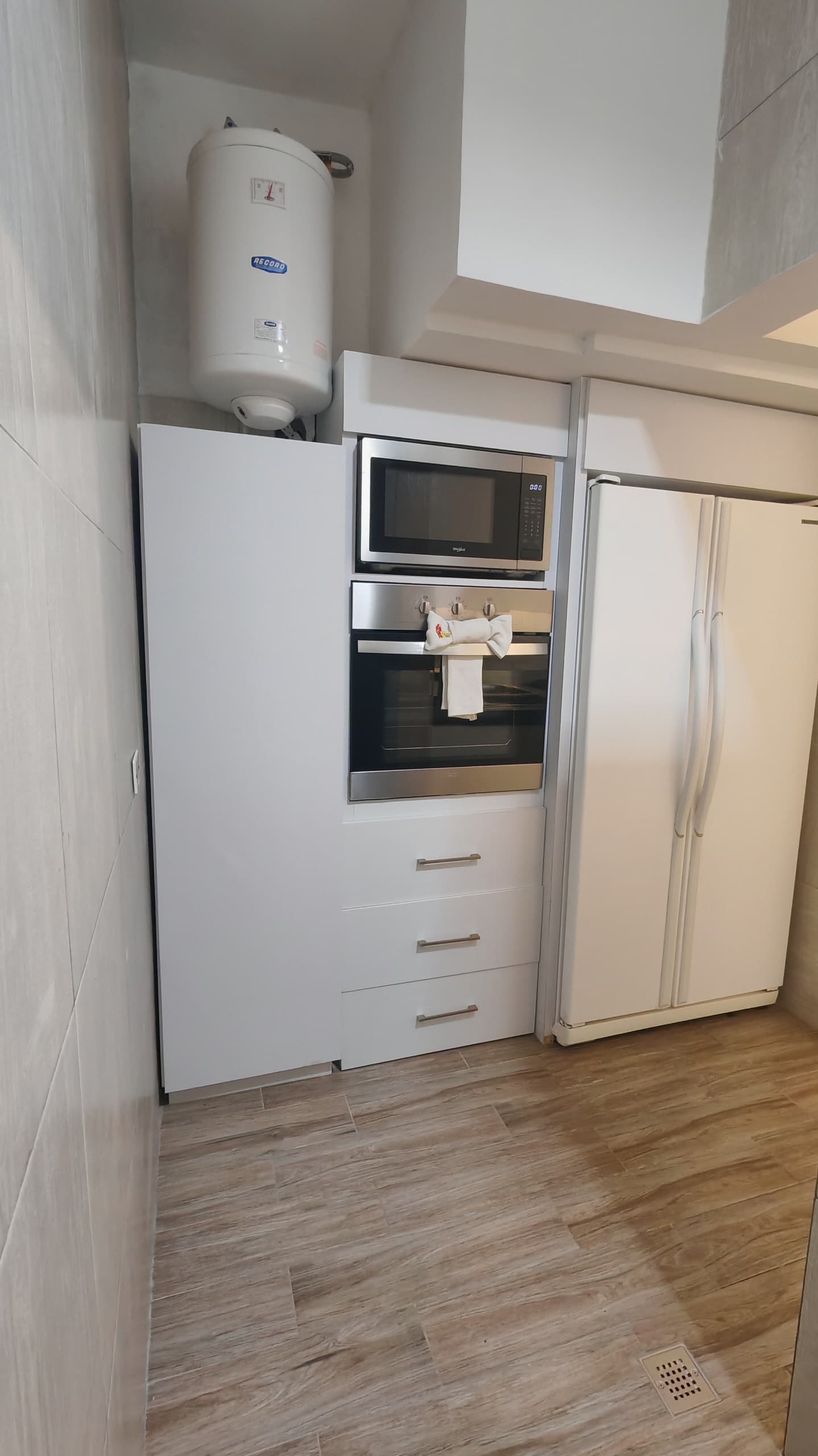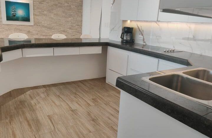 Cocina moderna en PVC de 18mm y topes de granito.