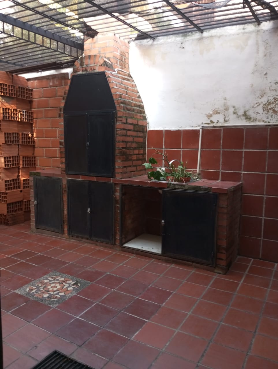 Patio con baño funcional y otra parrillera