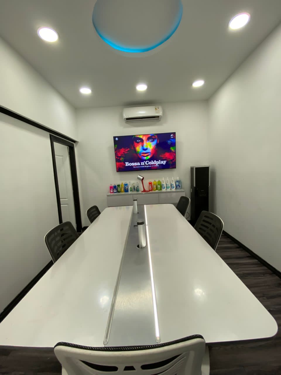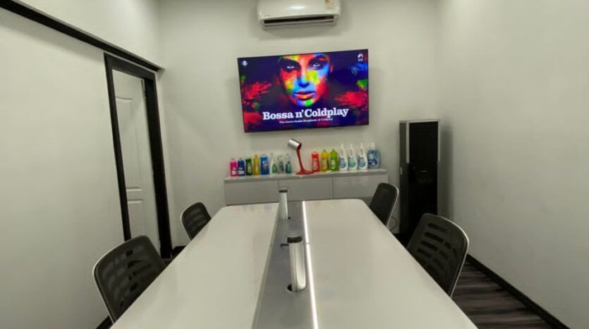 Oficina de Presidente toda este amoblada y decorada, equipos de computación ultima generación, tiene en esta oficina 3 pc la del directo, otra para trabajos ocasionales y la del servidor aire acondicionado techos en Drywall decorados y Luces indirectas, moviliario de primera, Tv, internet satelital, baño privado