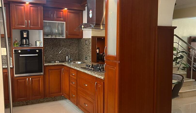 🔸 Patio con parrillera, mesón de granito y maleteros